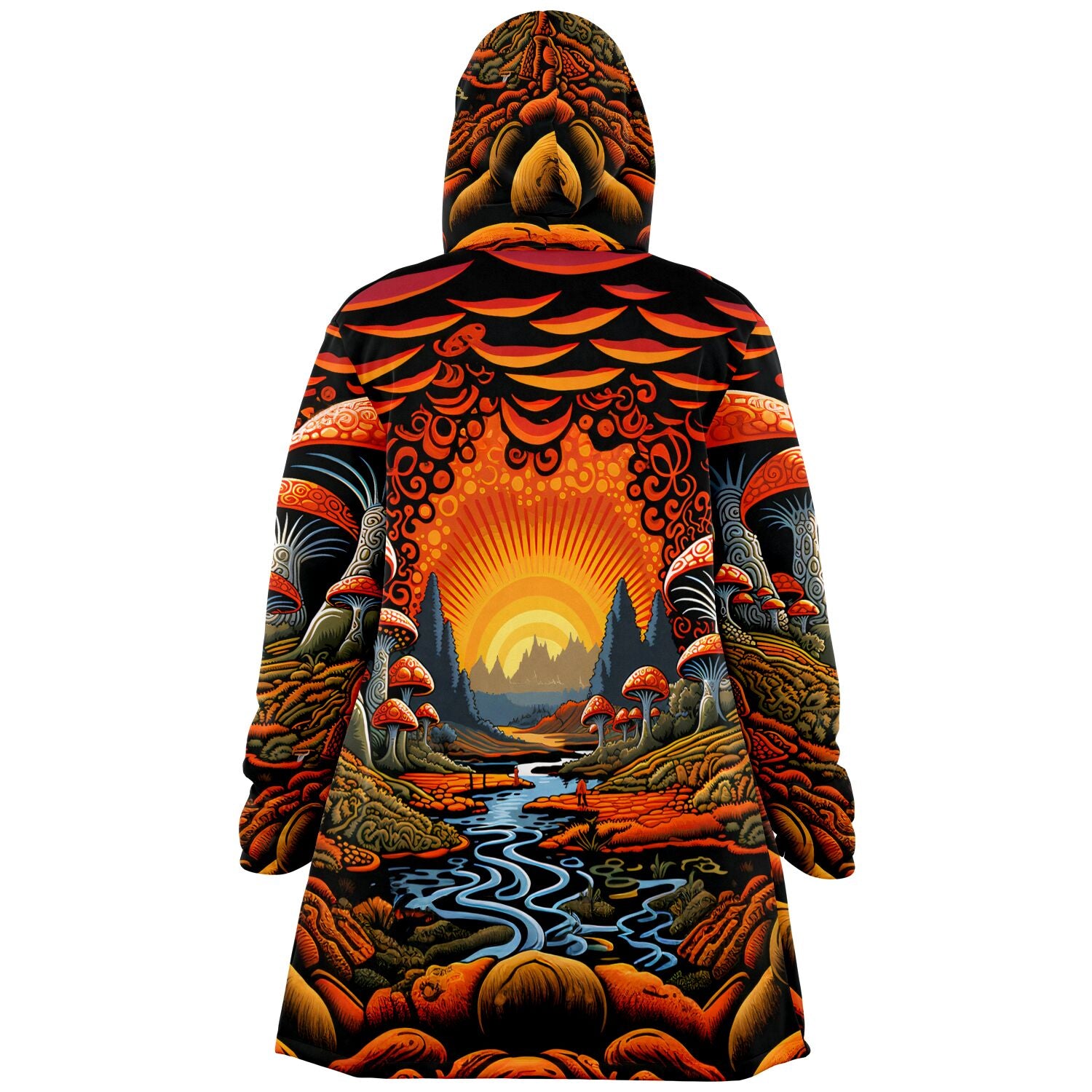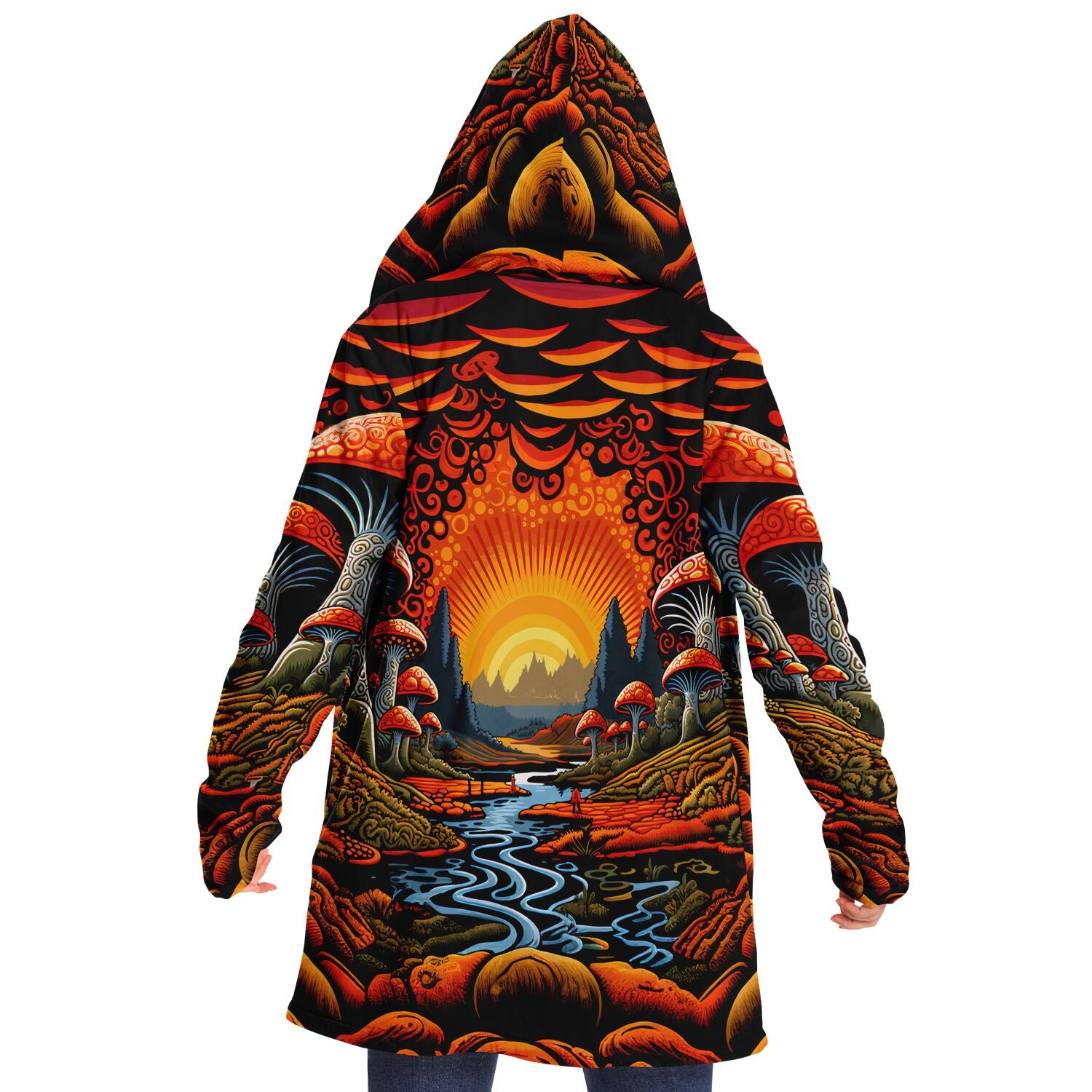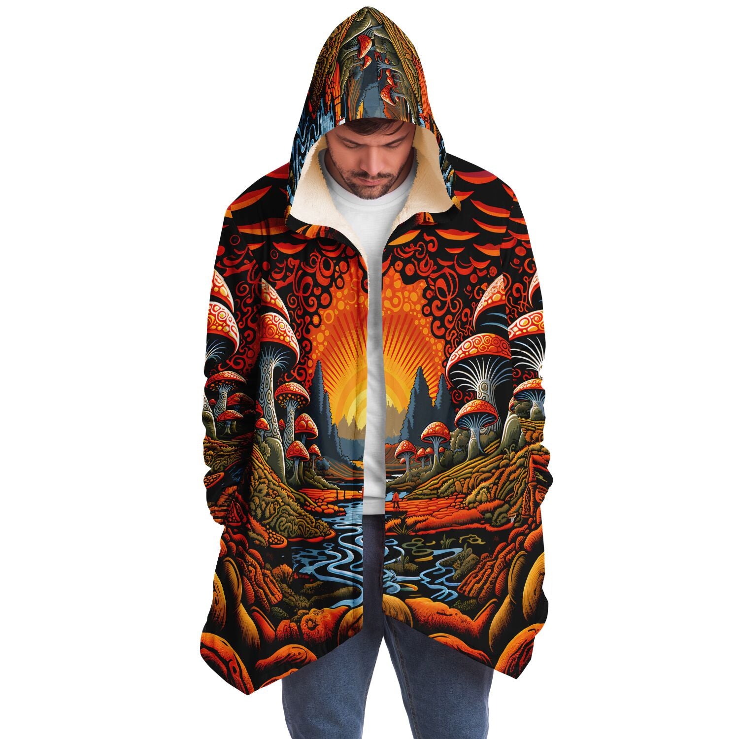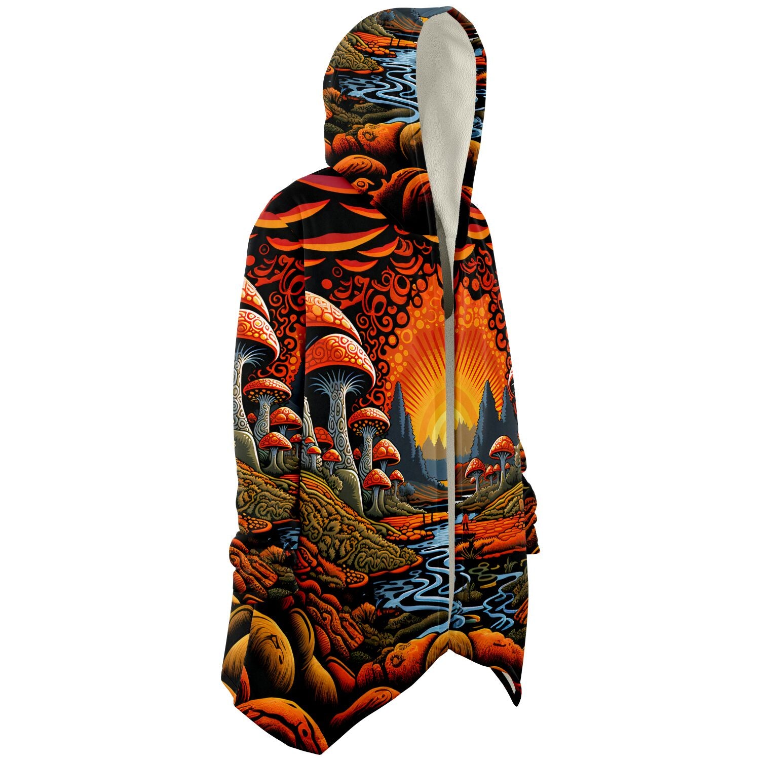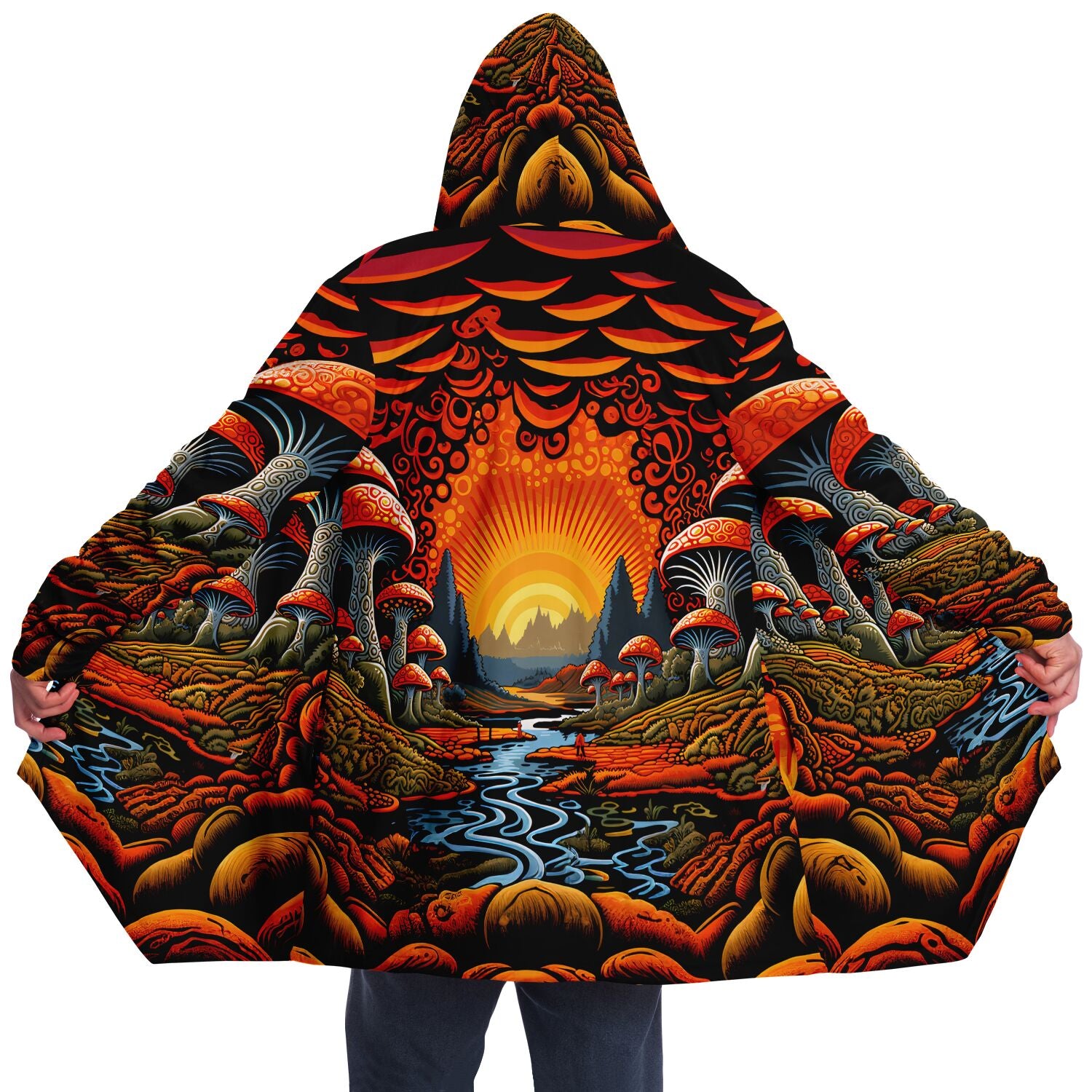 Step into the enchanting world of our Psychedelic Mushroom Path Cloak, Mycelium Journey, a wearable masterpiece that guides you through a trippy trek of vibrant reds and oranges. Luxurious in every sense, this cloak is crafted from an ultra-soft premium microfiber fleece lining, ensuring warmth and comfort on your exploration. The high-definition print on micro-mink polyester captures the psychedelic design with unparalleled vibrancy, while two deep side pockets add a practical touch to keep your belongings safe and your hands warm. Embrace the magical allure of mushrooms and experience the ultimate blend of style and comfort on your next festival or mushroom hunting adventure.
