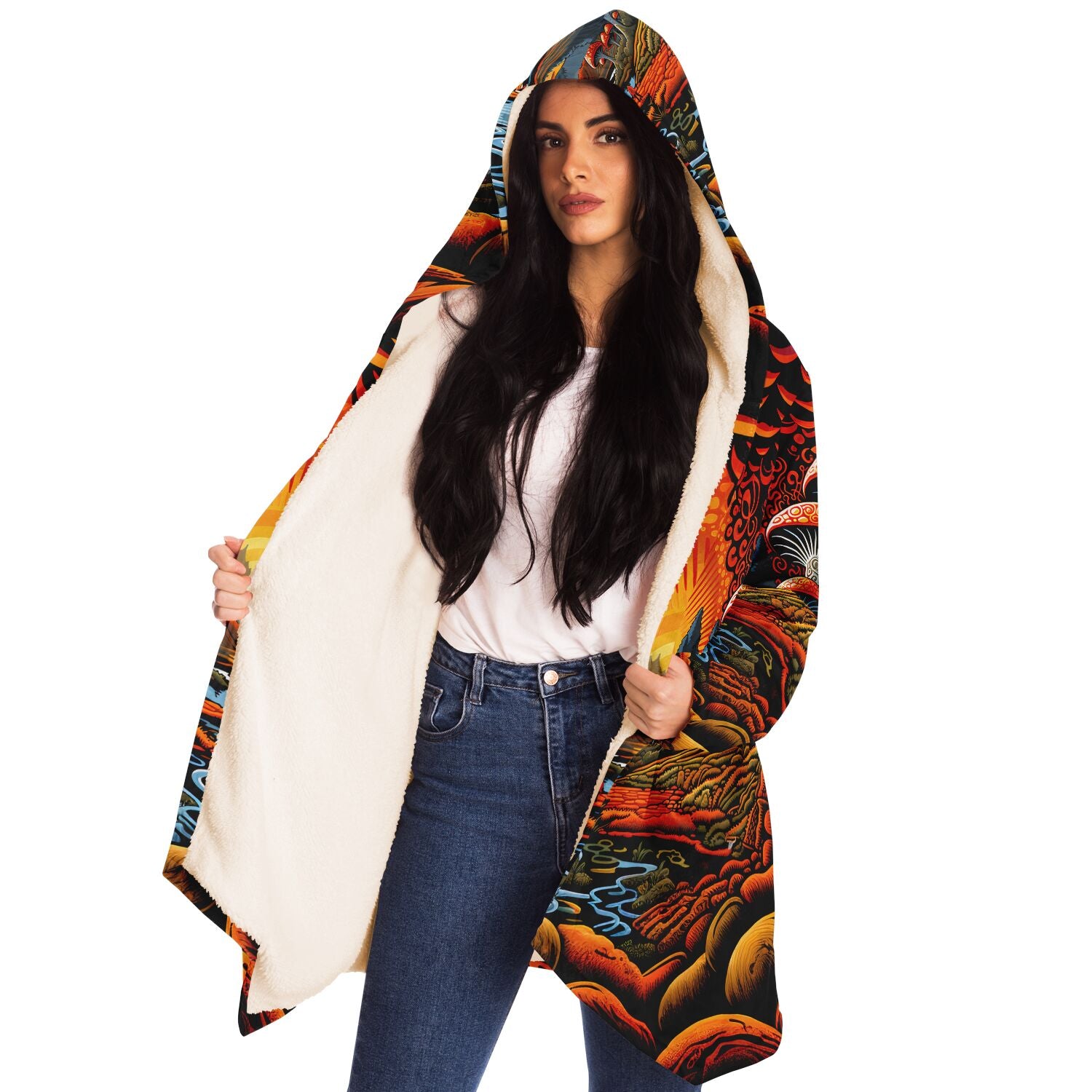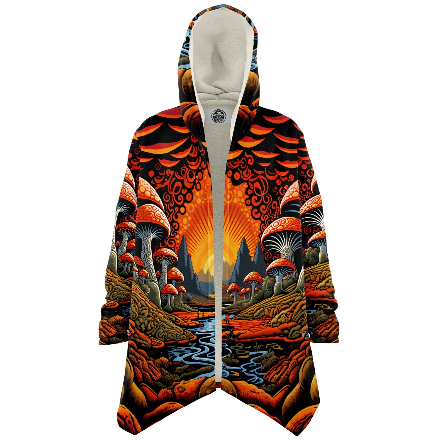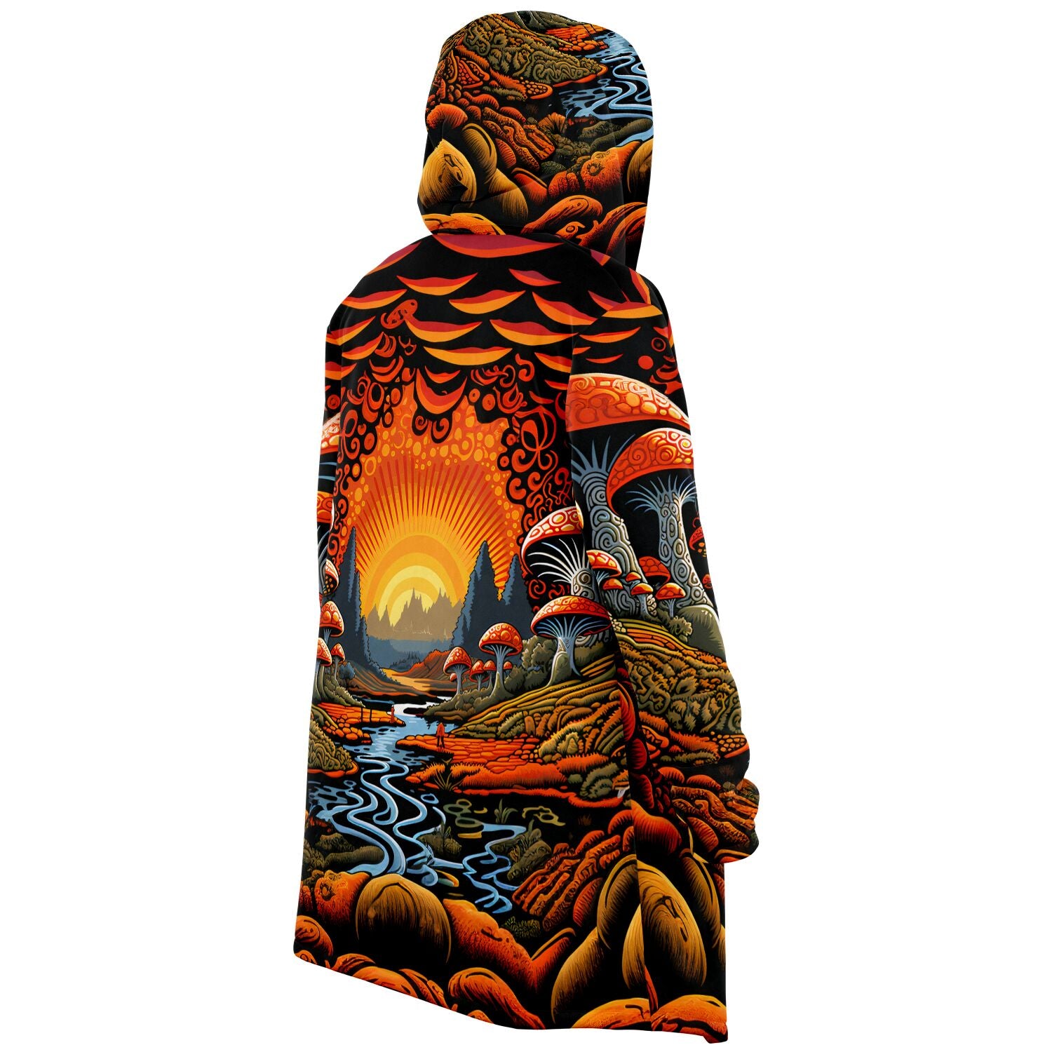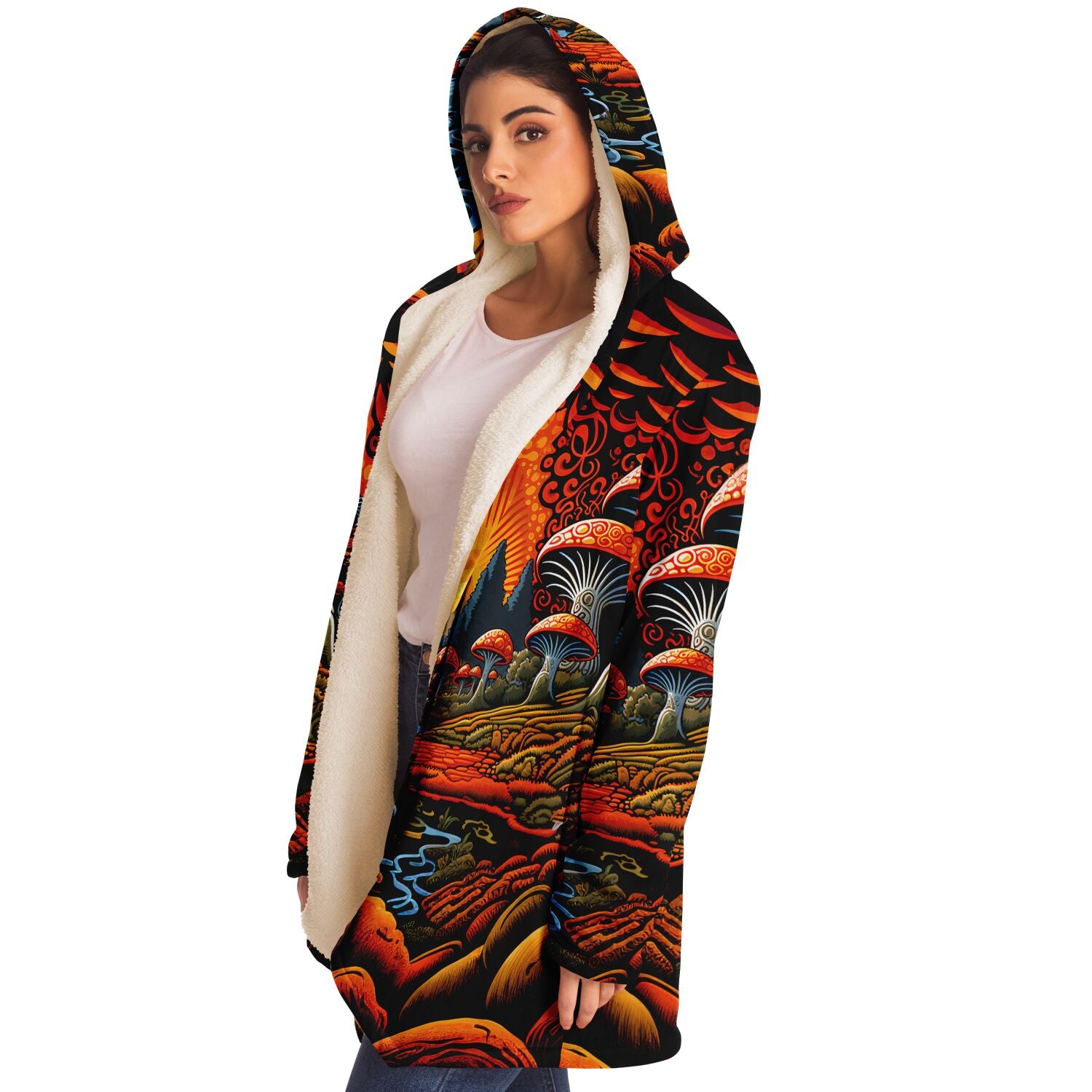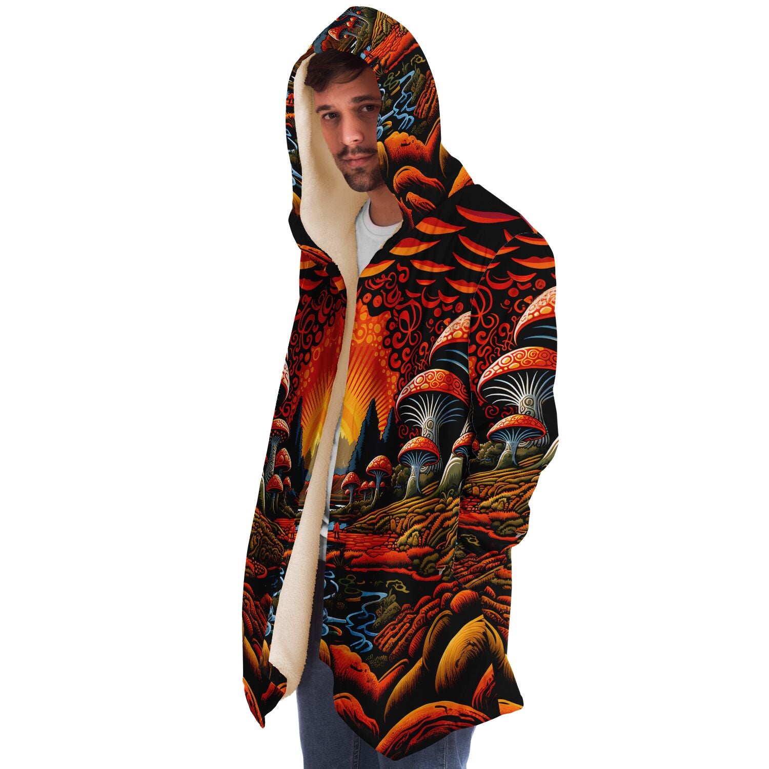 Step into the enchanting world of our Psychedelic Mushroom Path Cloak, Mycelium Journey, a wearable masterpiece that guides you through a trippy trek of vibrant reds and oranges. Luxurious in every sense, this cloak is crafted from an ultra-soft premium microfiber fleece lining, ensuring warmth and comfort on your exploration. The high-definition print on micro-mink polyester captures the psychedelic design with unparalleled vibrancy, while two deep side pockets add a practical touch to keep your belongings safe and your hands warm. Embrace the magical allure of mushrooms and experience the ultimate blend of style and comfort on your next festival or mushroom hunting adventure.